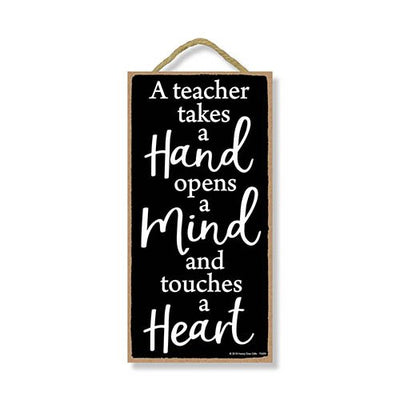 Show your appreciation to your teacher with Honey Dew Gifts Wall Hanging Decorative Wood Sign - "A Teacher Takes a Hand, Opens a Mind, and Touches a Heart"5 x 10 Hang on the Wall Home Decor.Hang this Teacher sign on doors and walls indoors. This delightful sign makes a great gift for family and friends.
