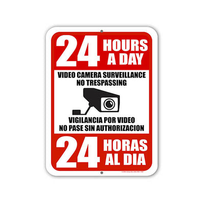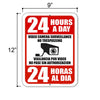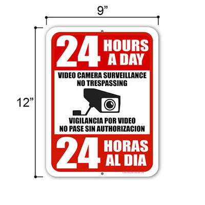 24 Hours a Day Video Camera Surveillance No Trespassing, Security Camera Sign, English Spanish Espanol Bilingual Signs, Security Metal Sign, 9 inch by 12 inch