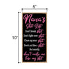 HIGH QUALITY SIGN: This sign measures 5" x 10" and is sure to be noticed by family & guests. Crafted from quality materials, this sign is made from solid MDF wood fiberboard. The thickness measures 1/4 inch and twine that is securely stapled to the back, ensuring durability & lasting hold. Indoor Use Only. Made in the USA.