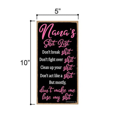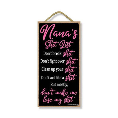 Add a little bit of sophistication to your home with our simple yet elegantly chic styled Honey Dew Gifts Wall Hanging Decorative Wood Sign - "Nana's Shit List " Home Decor. Your guests are sure to notice this little addition to your home or office.