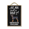 Brighten up the vibe of your living area or bedroom by hanging one of these funny dog decorative signs. For dog moms like you, the best dog wall hanging decor that you can get is the Honey Dew Gifts, All You Need Is Love and a Miniature Pinscher, Funny Wooden Home Decor for Dog Pet Lovers, Hanging Decorative Wall Sign. This wood dog sign decor makes sensible gifts for housewarming and birthdays. It's an all-occasion present for your family, friends, and coworkers who are dog or pet parents like you!