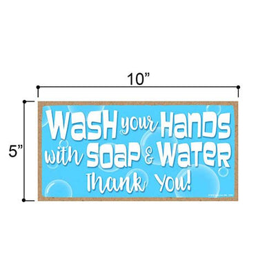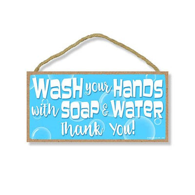 Add a little bit of sophistication to your home with our simple yet elegantly chic styled Honey Dew Gifts Wall Hanging Decorative Wood Sign - "Wash You Hands With Soap And Water Thank You" Home Decor. This cute wooden sign is perfect to hang in your restroom, bathrooms, or toilet in your home or office.