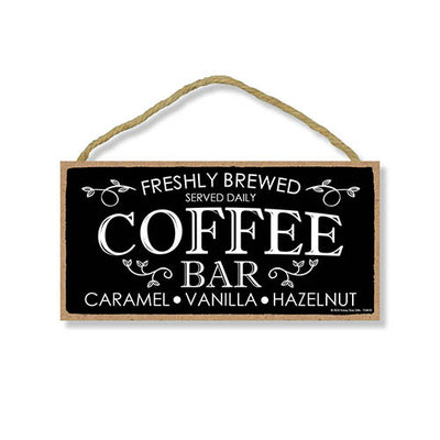 Charming Message: The Honey Dew Gifts coffee bar sign proudly declares "Coffee Bar Freshly Brewed Served Daily," adding a touch of warmth and charm to your coffee bar essentials.