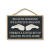 Add a little bit of sophistication to your home with our simple yet elegantly chic styled Honey Dew Gifts Wall Hanging Decorative Wood Sign - " Because Someone We Love is in Heaven There's a Little Bit of Heaven in our Home" Home Decor. Your guests are sure to notice this little addition to your home or office.