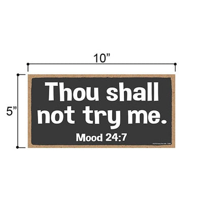 Add a little bit of sophistication to your home with our simple yet elegantly chic styled Honey Dew Gifts Wall Hanging Decorative Wood Sign - "Thou Shall Not Try Me Mood 24:7" Home Decor. Your guests are sure to notice this little addition to your home or office.