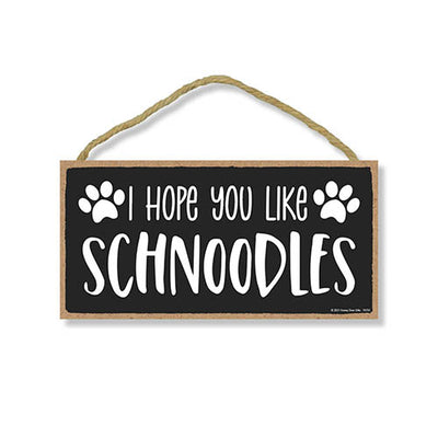 Are you looking for unique old English Schnoodle gifts? Look no further, the Honey Dew Gifts “I Hope You Like Schnoodles” dog lover signs for home are perfect for all-season giveaways for all Schnoodle fans out there!