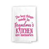 Add a little bit of sophistication to your home with our simple yet elegantly chic styled Honey Dew Gifts "The Best Things Made in Grandma's Kitchen are Memories", 100% Cotton, Multi-Purpose Kitchen Dish Towel.Beautifully crafted from 100% cotton that's woven in the traditional diagonal pattern ensure durability and built to last. Your guests are sure to notice this little addition to your home. It also makes a perfect gift for your family and friends.