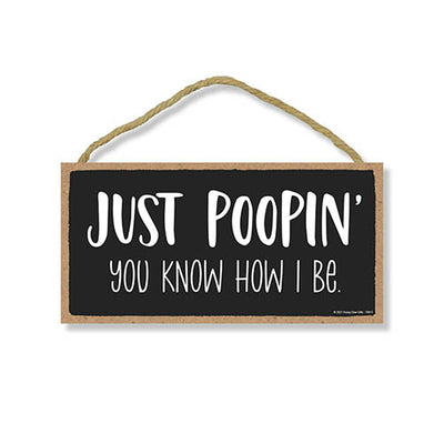 Add a little bit of sophistication to your home with our simple yet elegantly chic styled Honey Dew Gifts Wall Hanging Decorative Wood Sign - "Just Poopin You Know How I Be" Home Decor. Your guests are sure to notice this little addition to your home or office.