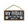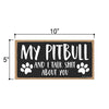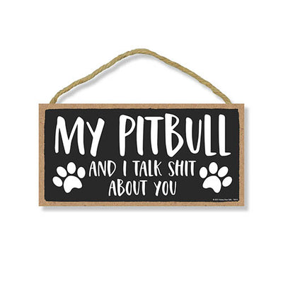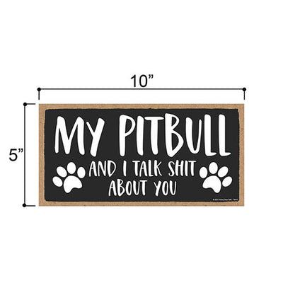 Add a little bit of sophistication to your home with our simple yet elegantly chic styled Honey Dew Gifts Wall Hanging Decorative Wood Sign - "My Pitbull and I Talk Shit About You" Home Decor. Your guests are sure to notice this little addition to your home or office.