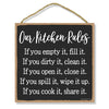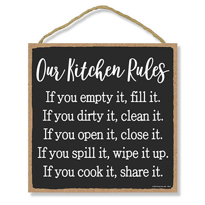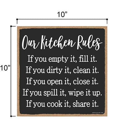 Add a little bit of sophistication to your home with our simple yet elegantly chic styled Honey Dew Gifts Wall Hanging Decorative Wood Sign - "Our Kitchen Rules" Home Decor. Your guests are sure to notice this little addition to your home or office.