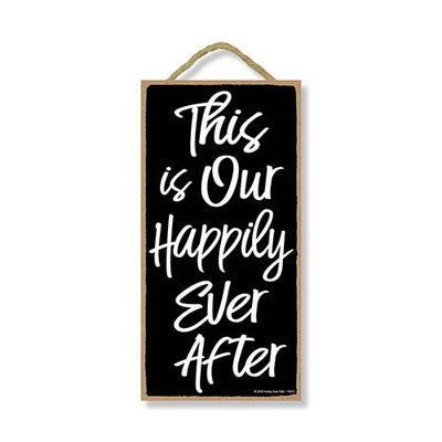 Add a little bit of sophistication to your home with our simple yet elegantly chic styled Honey Dew Gifts Wall Hanging Decorative Wood Sign - "This Is Our Happily Ever After" Home Decor. Your guests are sure to notice this little addition to your home or office.