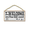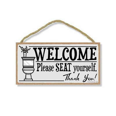 Add a little bit of sophistication to your home with our simple yet elegantly chic styled Honey Dew Gifts Wall Hanging Decorative Wood Sign - "Welcome Please Seat Yourself " Home Decor. Your guests are sure to notice this little addition to your home or office.