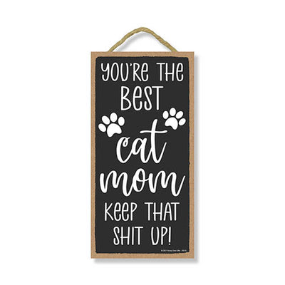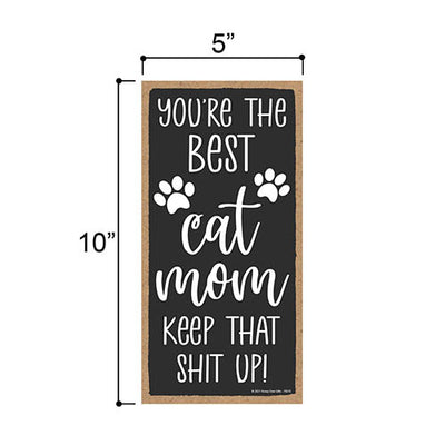 Your'e The Best Cat Mom Keep That Shit Up, Pet Lover Decor, Funny Cat Wall Signs, Gifts for Cat Owners, 5 Inches by 10 Inches
